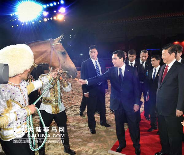 2014年5月12日晚,国家主席习近平习近平接受土库曼斯坦总统别尔德穆哈梅多夫代表土方赠予中方的一匹汗血马。