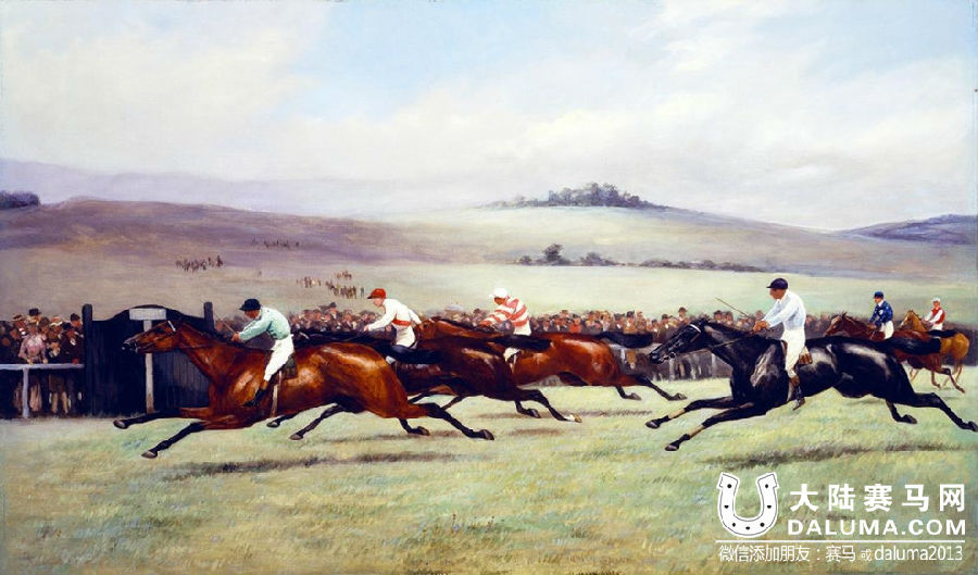1900年以前,英国骑师都是站在长长的马镫上赛马,坑了自己的成绩。这幅1894年的绘画再现了当时的盛景