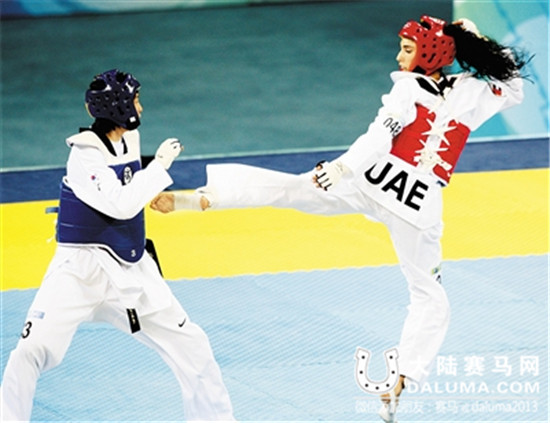 迪拜公主梅萨(右)参加北京奥运会跆拳道比赛
