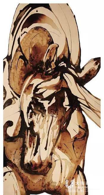 这个自学成才的艺术家,运用了一项注册技术,将咖啡与日本墨、丙烯酸有机结合,创作出极具开创性的表现主义作品。