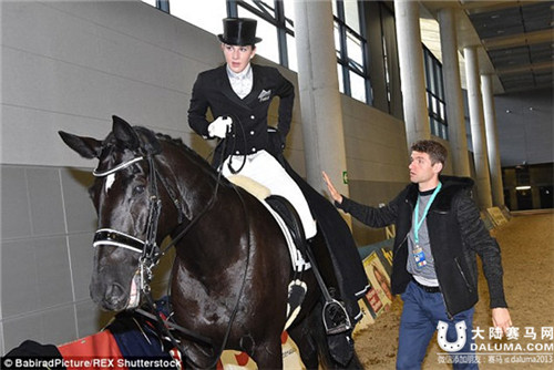 穆勒在帮丽萨打理马匹(左),并准备好观看她的比赛了。