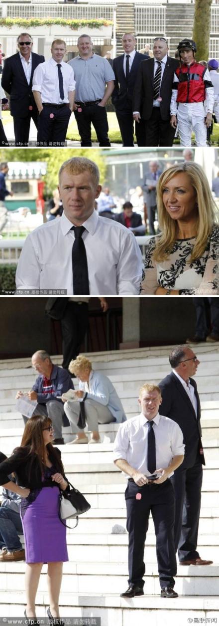 日前,曼联名将斯科尔斯携爱妻观战赛马