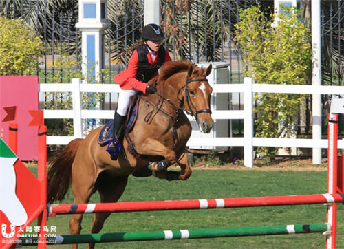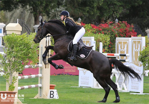 2月27日,一名女骑手在比赛中。阿布扎比法蒂玛·宾特·穆巴拉克女子体育学院杯女子马术场地障碍赛26日在阿布扎比马术俱乐部开赛。