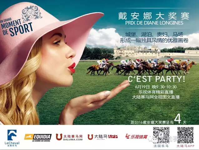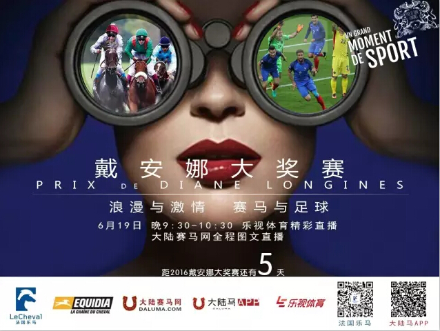 除了如火如荼的欧洲杯,2016年全球规模最大的雌马平地速度赛马——戴安娜大奖赛也即将在法国上演!来不了法国?没关系,我们把法国带到你面前!——法国乐马+Equidia电视台+乐视体育视频直播+大陆赛马网PC网站、手机客户端APP、微信、微博全方位呈现。
