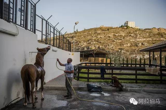 规模更大一些的马房散落在约旦河西岸被以色列占领的村镇中,这里许多家庭都养阿拉伯马。在耶路撒冷以北大约90分钟车程的Turmusaya,驯马师Hamdan先生管理着一个能容纳24匹马的马房,爱马者们经常找他训练自己的阿拉伯马,不论是为了选美、速度赛,或仅仅是让它们漂亮地走在村镇的街道、河谷、橄榄林、或是陡峭的山麓上。