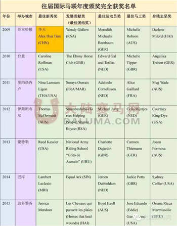 历届国际马联年度获奖名单