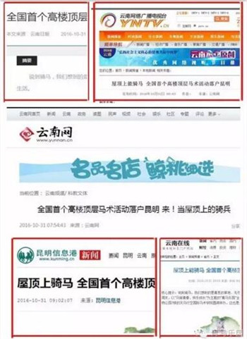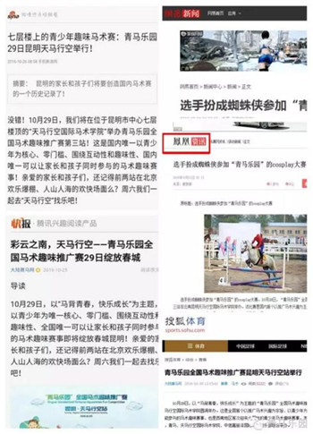 Tencent, Sina, ifeng, NTES, Sohu, Toutiao and several big web portal especially reported Qingma Wonderland Leg Pegasus International Equestrian Academy, and gave a strong promotion so that make Pegasus to be known by many people.