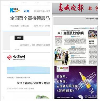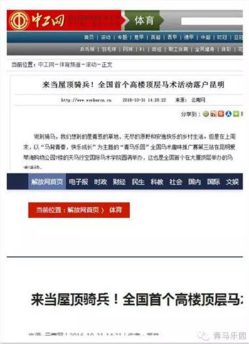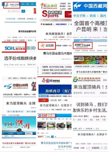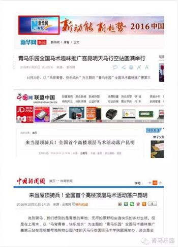 Xinhua net reported at politics, sports, and other channels, China.com, ChinaNews.com, jfdaily, and Zhonggongnet.com etc. All of those mainly reported Qingma Wonderland leg Pegasus International Equestrian Academy.
