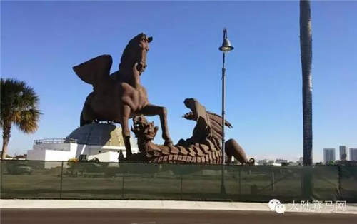 之所以叫“飞马世界杯”,跟湾流公园赛马场一个巨大的飞马青铜雕塑有关。而这个雕塑,来自于中国山西。这座“飞马”站在一座高六层的建筑物顶层,耗费3000万美元。