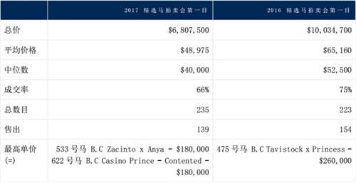 2017精选马拍卖会第一日数据
