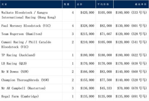 来自香港、澳大利亚、新加坡的买家为总价贡献了54%,而国内的买家买下了78匹马(总数的56%),花费了310万新西兰币,占当天的46%。