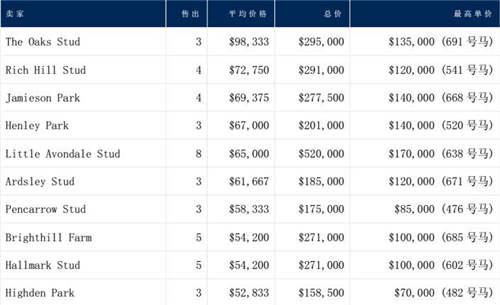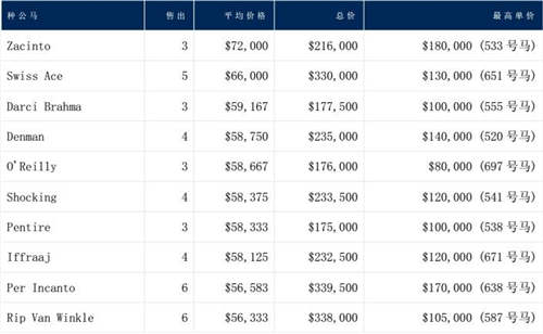 种公马排名(按平均价格,售出3匹及以上)