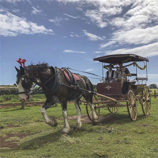 而The Farm就是这么一个观光区,他们似乎已经做得更好。他们运营了一辆从欢迎标语处到农场的马力车,每次收费8美元。我们希望当有车辆经过时,马儿不会因为一氧化碳中毒死去或还在想这是什么。
