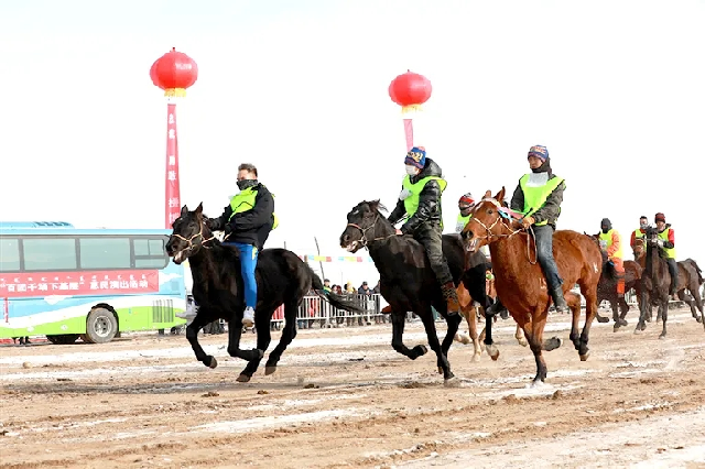 大陆赛马网讯 11月28日,第七届内蒙古国际马术节暨“草原农夫杯·莫尼山赛马节”赛马比赛在乌拉特前旗额尔登布拉格苏木白彦花嘎查开赛。本次比赛共有来自乌拉特前旗、乌拉特中旗、乌拉特后旗、包头等地的近百名骑手和近百匹蒙古马、混血马参赛,共设有蒙古马速度赛10000米、混血马速度赛8000米、2岁蒙古马速度赛4000米、3岁蒙古马速度赛6000米、蒙古马走马赛8000米、3岁蒙古马走马赛6000米六个竞赛项目。