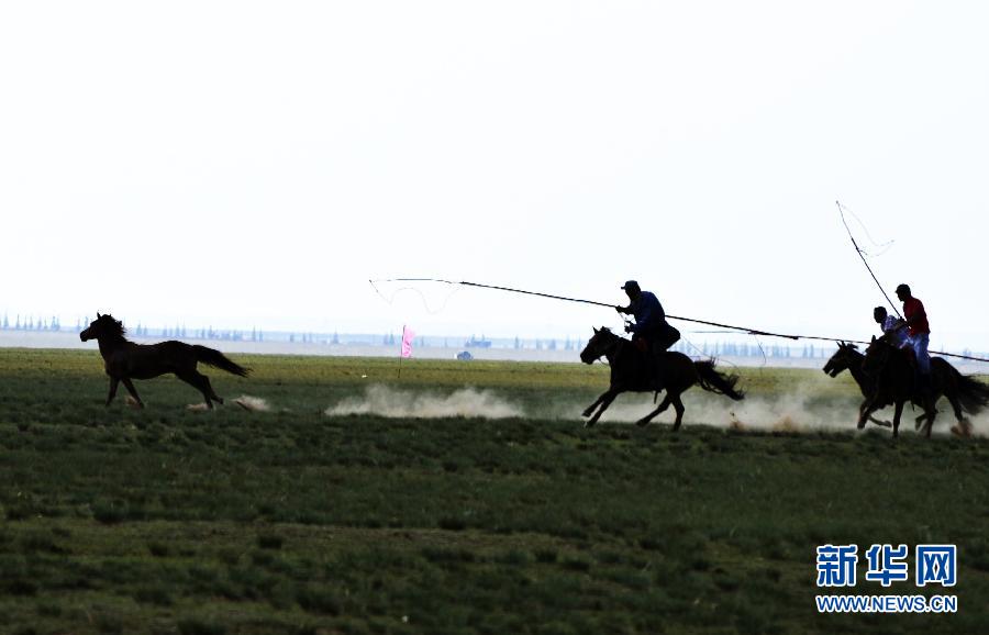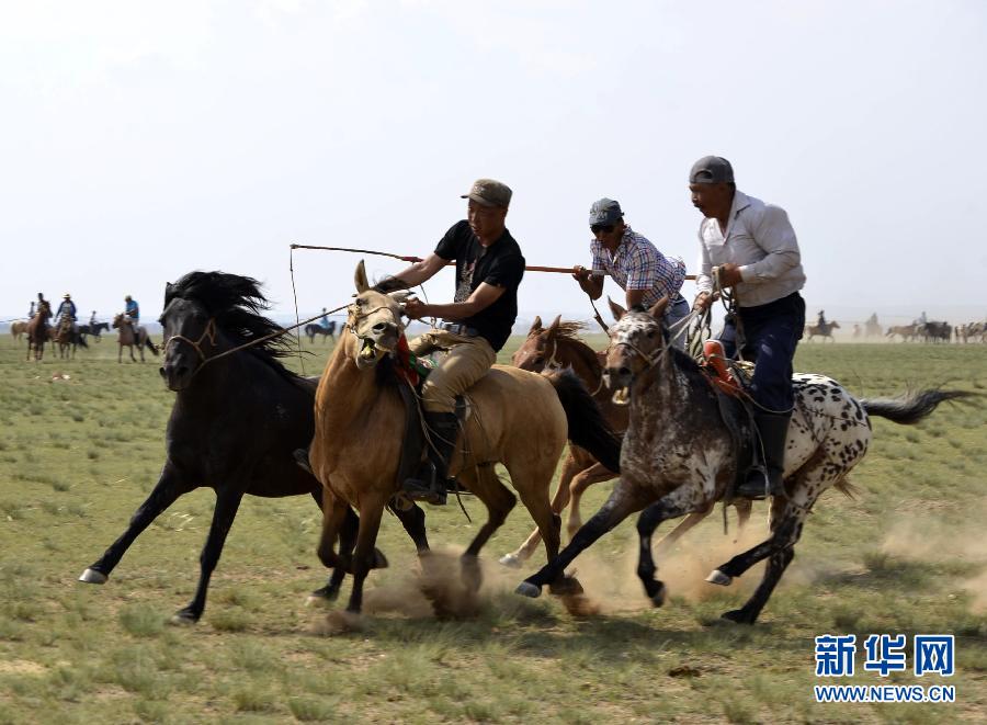 7月5日,一场那达慕大会在内蒙古乌拉特中旗同和太牧场举行,来自周边各地的蒙古族群众欢聚草原,参加传统的射箭、赛马、搏克等比赛。