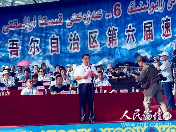 7月21日,全国三个哈萨克自治县第四届阿肯阿依特斯盛会暨新疆维吾尔自治区第六届速度赛马锦标赛在木垒哈萨克自治县开幕,木垒县委副书记、政法委书记于峰山主持开幕式。