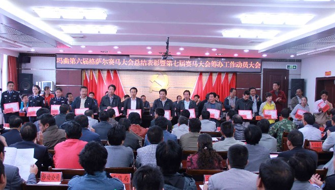 近日,甘肃省甘南藏族自治州玛曲县召开第六届格萨尔赛马大会总结表彰暨第七届赛马大会筹办工作动员大会,县四大班子领导,县直各部门、省州驻玛各有关单位负责人,各乡镇场党委、政府主要负责人等参加了会议,会议由县委副书记、县政府县长王力同志主持。