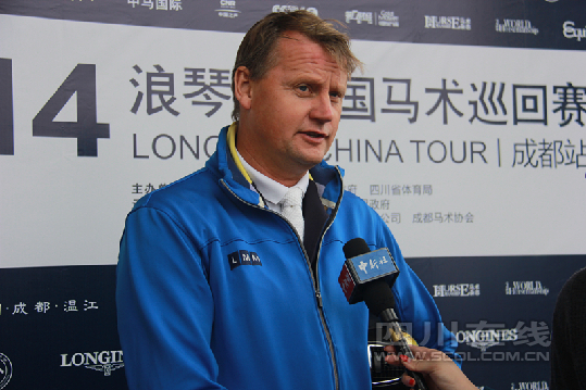 来自乌克兰的骑手乌尔里奇·基尔霍夫参加了2014年第五届中国马术节中国马术巡回赛成都站的比赛。