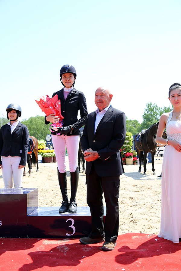 琪琪木乐站在2014浪琴国际马联场地障碍世界杯中国联赛的领奖台上