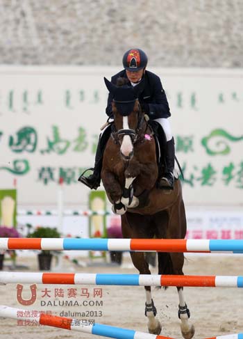 马术俱乐部联赛共有5个级别,其中135-150cm是各俱乐部最为重视,也最能体现实力的比赛。在最后一天的比赛中,黄祖平也打到了附加赛,要知道他这次骑的是一匹新马,他的1号马“莉莉”正在进行亚运会前的检疫和隔离,因此,能取得这样的成绩他格外高兴。“第一轮的两天比赛中,我出现了事故,我与这匹新马配合还不是很娴熟,通过这几轮比赛我与它越来越适应,昨天打了第4,今天打了附加赛,我也为这匹新马感到高兴,它展现了它的勇敢和能力,希望以后能更好地适应这匹马。”