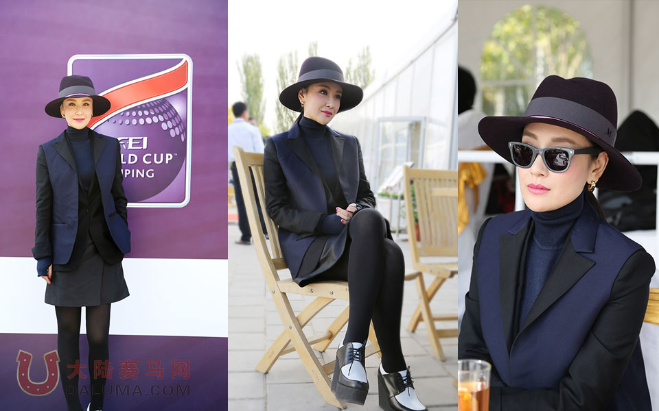 20日,大陆演员孙宁出席2013国际马联(FEI)场地障碍世界杯中国联赛总决赛。当日孙宁身着一袭蓝黑色相间西装套裙亮相,搭配黑色优雅礼帽耳钉,尽显高贵气质的同时略带有贵族骑士风的搭配也顿时成为全场亮点。