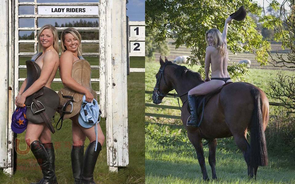 2012年11月,英国15名女骑手裸体出镜,拍摄了一组2013年慈善日历照,为某空中救援服务机构筹款。照片中,这些18到65岁的女性仅着马靴,除用头盔、马鞍等马具遮掩重要部位外一丝不挂。她们在干草棚、马具室或猎人舞会上与猎犬和爱马摆出各种性感姿势。据摄影师介绍,女士们首先有些放不开,还冻得瑟瑟发抖,但后来就渐渐放松,享受起这一过程。据悉,这组慈善日历售价为13.95英镑(约合140元人民币),面世仅4天就售出了140份。