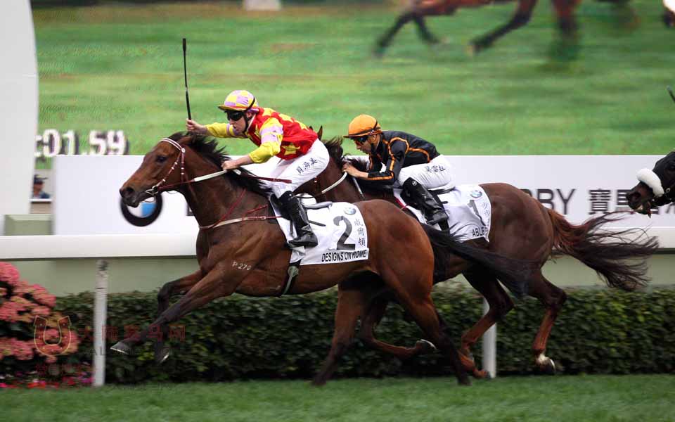 ·由练马师约翰摩亚训练的“威尔顿”(2号马),于骑师贝汤美胯下力压“步步友”(1号马),胜出宝马香港打吡大赛(香港一级赛2000米)。