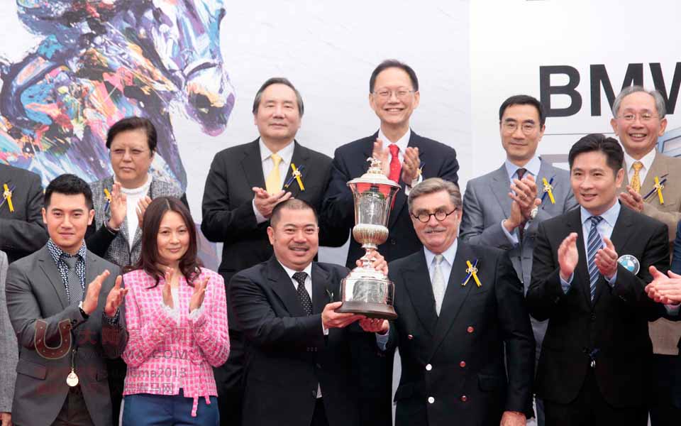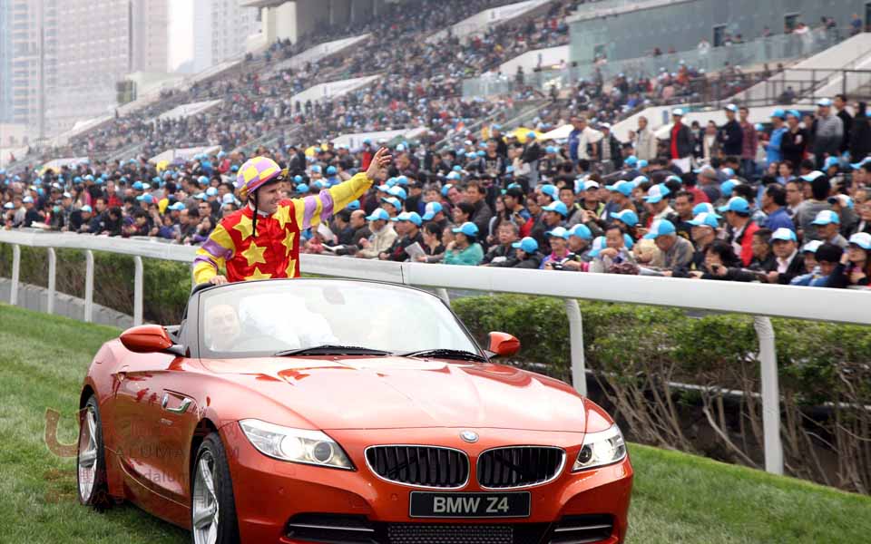 ·宝马香港打吡大赛冠军“威尔顿”的马主、练马师及骑师,于颁奖仪式后乘坐宝马开篷跑车,在草地跑道上巡游,接受马迷祝贺及答谢大家的支持。