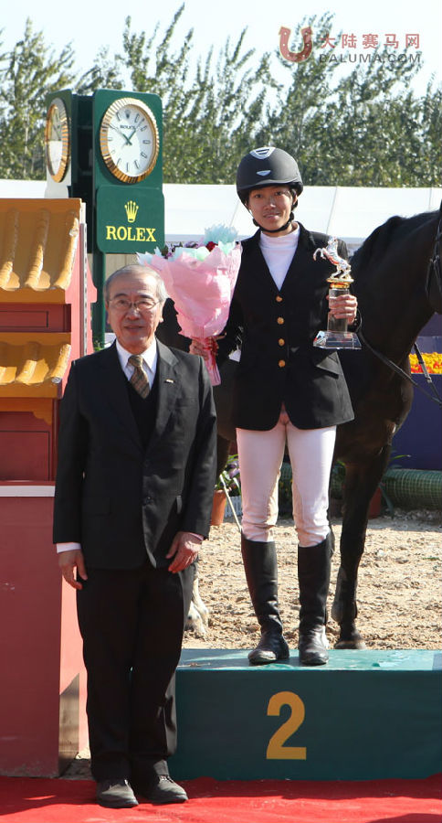 10月20日上午,2013国际马联FEI场地障碍世界杯中国联赛总决赛90-100cm青少年及马主赛第二轮9:00准时打响。比赛当天主办地朝阳公园的天气非常好,应该是开赛以来最好的一天。倒数第三位出场的来自北京国发马术俱乐部的李哲和马匹瘦瘦遗憾的碰掉一个障碍,用时61.62秒,总罚分4分,由于首轮李哲和瘦瘦拿到第一名,因此总成绩还有较大优势,最后获得亚军。