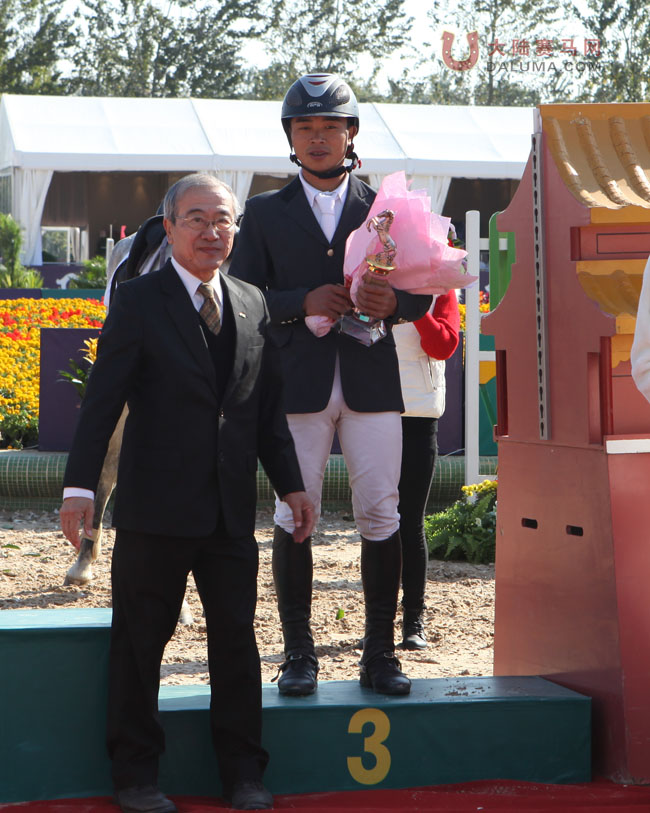 10月20日上午,2013国际马联FEI场地障碍世界杯中国联赛总决赛90-100cm青少年及马主赛第二轮9:00准时打响。比赛当天主办地朝阳公园的天气非常好,应该是开赛以来最好的一天。第九位出场的来自北京月河湾马术俱乐部的董飞和马匹公主发挥很好,取得全场收个马主0罚分,行进时间67.02秒,一举扭转首轮仅仅排名第7名的劣势,最后取得第三名的好成绩。