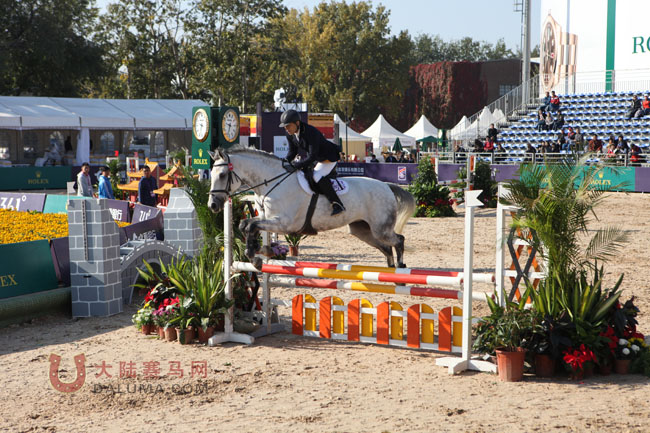 10月20日上午,2013国际马联FEI场地障碍世界杯中国联赛总决赛90-100cm青少年及马主赛第二轮9:00准时打响。比赛当天主办地朝阳公园的天气非常好,应该是开赛以来最好的一天,马主赛共有9位骑手参加。第十六位出场的来自北京月河湾马术俱乐部的林飞和马匹珍奇最终用时74.05秒,障碍罚分8分,获得第六名。