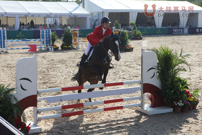 10月20日上午,2013国际马联FEI场地障碍世界杯中国联赛总决赛90-100cm青少年及马主赛第二轮9:00准时打响。比赛当天主办地朝阳公园沙排主场地迎来最好的天气,马主赛共有9位骑手参加,青少年赛有14位骑手参加。第八位出场的北京广普瑞队的蒙全威和马匹ZURPRISE没有受到之前三位骑手连续马匹拒跳被淘汰的影响,今天发挥还可以,用时71.46秒,障碍罚分4分,总罚分4分。最后总成绩排名第七位。