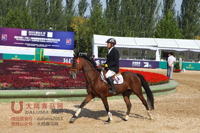10月12日上午,2013国际马联场地障碍世界杯中国联赛第二站率先开始青少年和马主赛的争夺。在上午进行的60-80cm马主赛第一轮中,第三个出场的是北京月河湾马术俱乐部的张显峰,策骑马匹“无辉”,比赛过程中坠马,遗憾被淘汰。