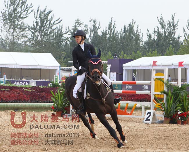 2013国际马联FEI场地障碍世界杯中国联赛第二站135-140cm世界杯热身赛10月12日下午14:15在北京朝阳公园沙滩排球主场地准时开赛,马术比赛在公园内举行也是主办方的一次尝试,但场地带来的影响还是让很多骑手吐槽。美国女骑手KamaGodek策骑马匹Chrismon第二个出场,跟第一个出场的英国骑手HenryTurrell一样,马匹两次不服从骑手,骑手被淘汰。
