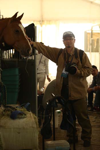 梁晓光先生在2014浪琴国际马联场地障碍世界杯中国联赛的马房内