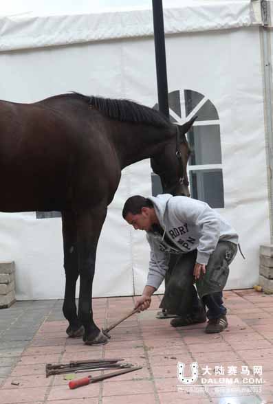 Lois给我展示了不同类型的马蹄铁。他说:“根据世界杯的比赛场地,这次比赛用到的蹄铁主要分为铝制的和铁制的两种,从型号上则依据每一匹马的具体马蹄大小来定。如果是草地的比赛场地,那么就需要用一些特殊的蹄铁来保证骑手和马匹更好的完成比赛。”当被问到用什么测量工具给马测量马蹄时,他自豪地指了指自己的眼睛说:“I see and decide.(我用眼测量)”