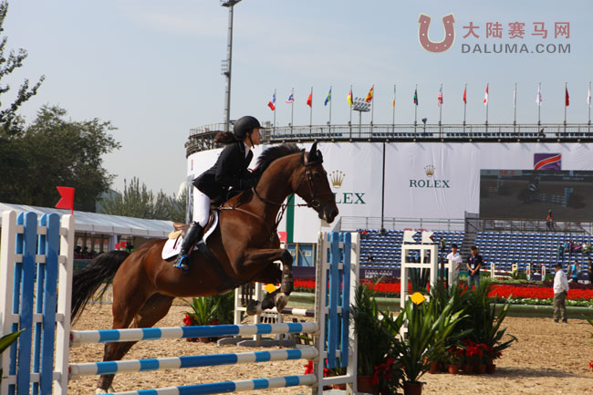 第3个出场的,京城马汇马术俱乐部的张林林,马匹PHILIS,第一轮比赛中遗憾落马被淘汰。今天第二轮行进至第7个障碍时,再次坠马,遗憾淘汰。