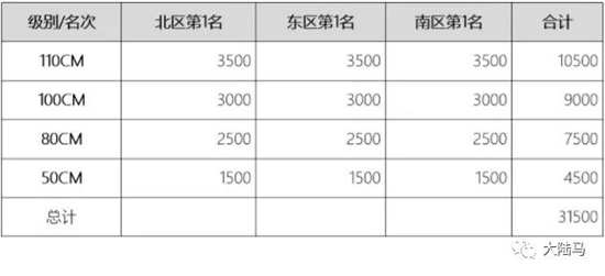 【总决赛】各级别冠军有奖金,奖金分配表如下(单位:元)——