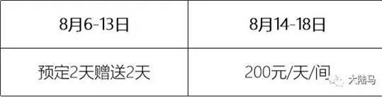 答:8月6日可正式入驻马房。8月6日-13日,马房费预定2天赠送2天。8月14日-18日:马房费200元/天/间。