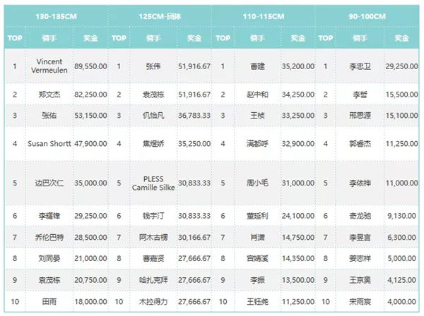 众所周知级别越高奖金越多,而这些骑手无一例外都是来自150CM级别的高级别职业骑手,这也是对他们积年累月辛苦付出最好的鼓励。