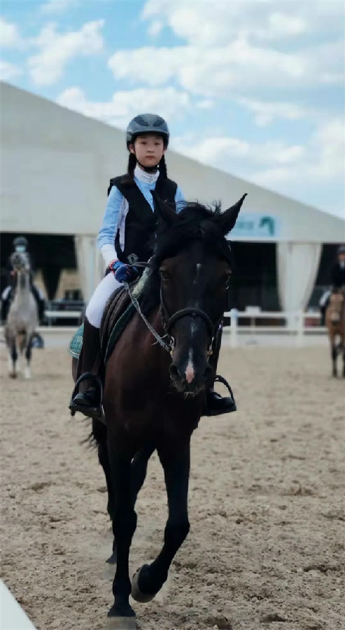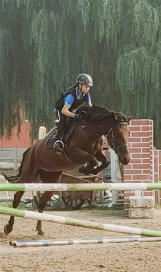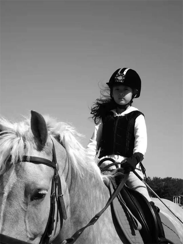 从小家里就养了狗作为宠物,对动物非常有爱心的石榴6岁时爸爸带她来马场,她不仅没有半点害怕,还一下子就喜欢上了马。至今,已经跟随马利教练学习了5年的她,依然痴迷骑在马背上的感觉,还非常喜欢跟马儿一起完成跳跃障碍的活动。而这也是石榴最感谢马利教练的方面,虽然有时会觉得马教练很严格,几乎是她遇到所有老师中最严厉、最严格的,但也正因为这种严格让石榴掌握了控马的技术、与马配合得越来越好,才有了如今在马背上自由驰骋还可以不断挑战自己的乐趣。随着障碍级别的升高,石榴的自信和胆量也越来越足,也越来越敢于挑战自己。这是在其他运动中无法体验和收获的历炼与快乐。