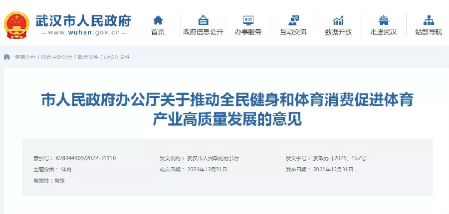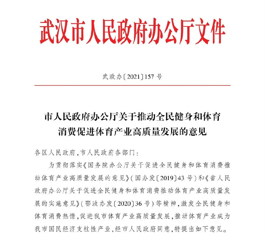 《武汉市人民政府办公厅关于推动全民健身和体育消费促进体育产业高质量发展的意见》