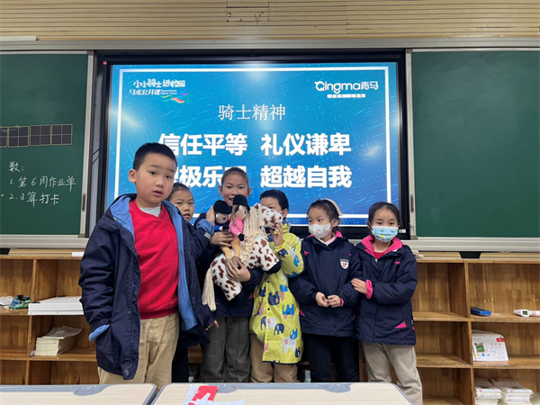 课余时间,小骑手们和玩偶马合影 (马术社团教具由青马体育官方合作伙伴“乐乐马”支持提供)