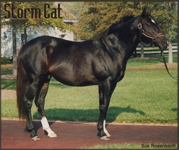 继续往回追溯,“巨人长堤”的父系是美国冠军种公马“暴风猫”(Storm Cat),在配种生涯巅峰期,“暴风猫”曾经以50万美元的高价创造了当时北美种公马配种费的记录。在国际马坛,“暴风猫”最知名的后代莫过于“巨人长堤”,而巧合的是,他的后代“嘉里”也是中国马主联盟认证种公马中的一员。