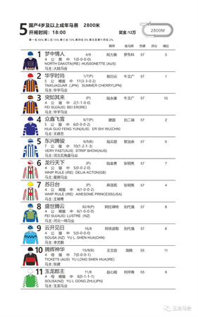 今日压轴赛为总奖金12万元“国产4岁及以上成年马赛”,11匹赛驹挑战2800米途程,这也是玉龙本赛季首个2800米长途程比赛。