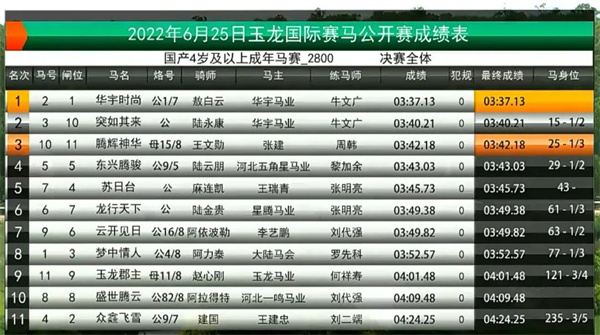 玉龙新赛季首个2800米赛事:华宇马业包揽冠、亚