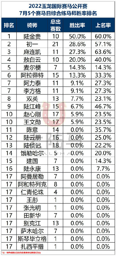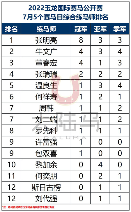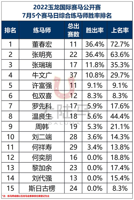 2022玉龙国际赛马公开赛7月【练马师、骑师排名】出炉了!