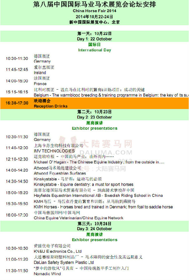 第八届中国国际马业马术展览会论坛日程安排