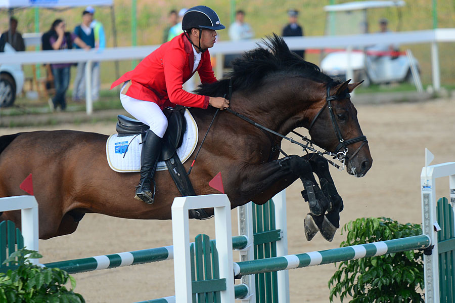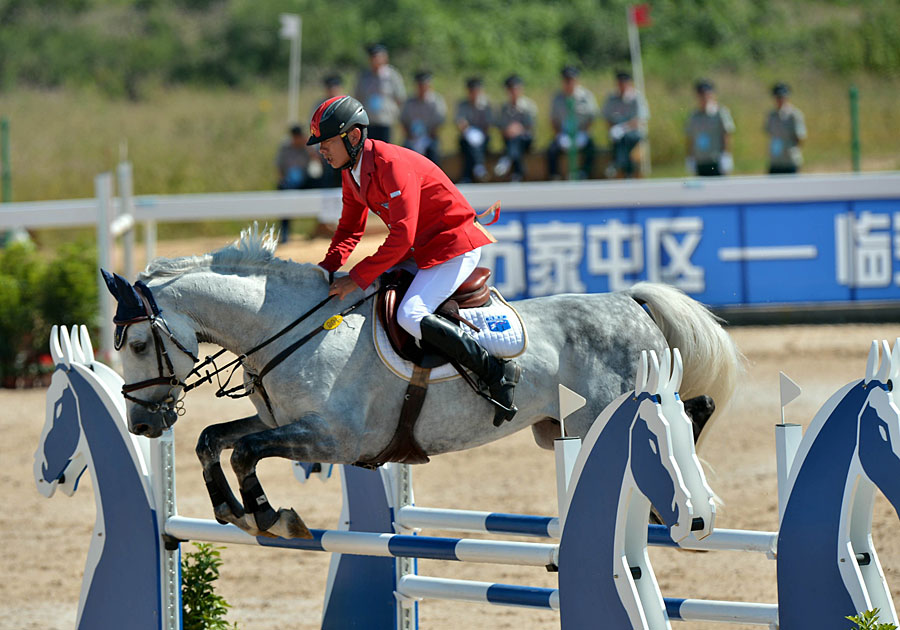 全运会马术比赛在沈阳苏家屯区马术运动中心举行。在首日进行的团体障碍赛决赛中,异军突起的内蒙队逆转广东,获得马术首金。广东、辽宁队分获银牌和铜牌。