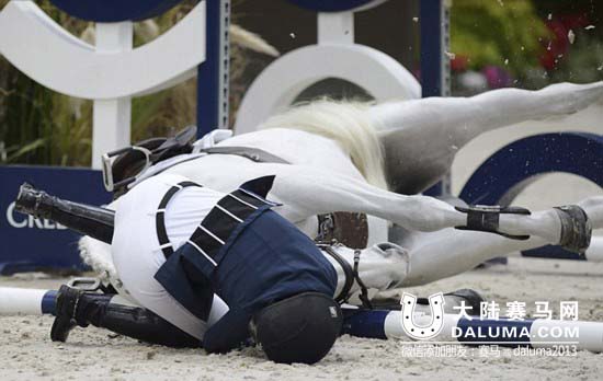 据悉,现年29岁的雅典娜当时正骑着自己11岁的爱马——Ad Camille Z-Zhang,不料突发意外。所幸的是,雅典娜并无大碍,但其爱马受伤严重,不得不用吊车将它从赛道上挪开。